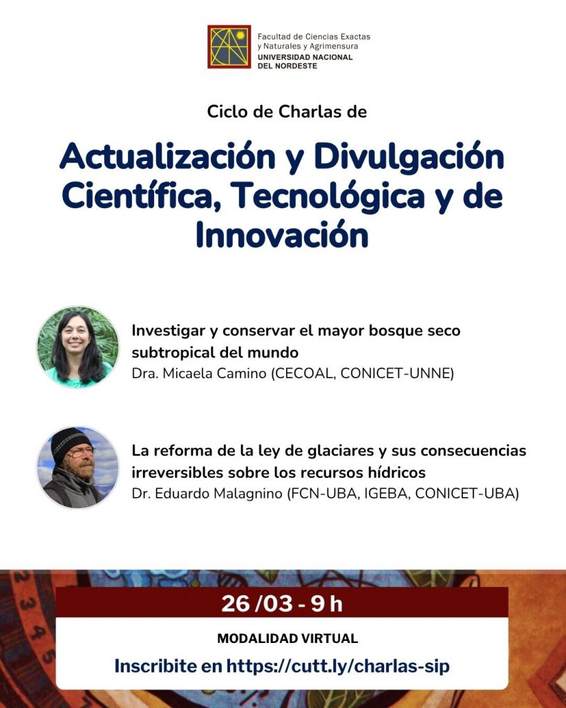 - Dra. Micaela Camino (CECOAL, CONICET-UNNE): “Investigar y conservar el mayor bosque seco subtropical del mundo”.