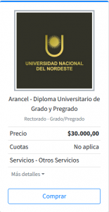 Para efectuar el pago del arancel correspondiente a la emisión del Diploma, cuyo monto total es de $30.000. RES – 2025 – 7936 – REC # UNNE, debe ingresar al sitio pagos.unne.edu.ar y elegir la opción Arancel – Diploma Universitario de Grado y Pregrado (consulte la imagen adjunta). Es importante presentar el comprobante en formato de factura (ver imagen proporcionada).