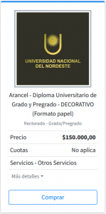 Al efectuar el pago, EL EGRESADO/A DEBERÁ INDICAR EN pagos.unne.edu.ar LA DENOMINACIÓN DEL DIPLOMA DECORATIVO QUE DESEA SOLICITAR.